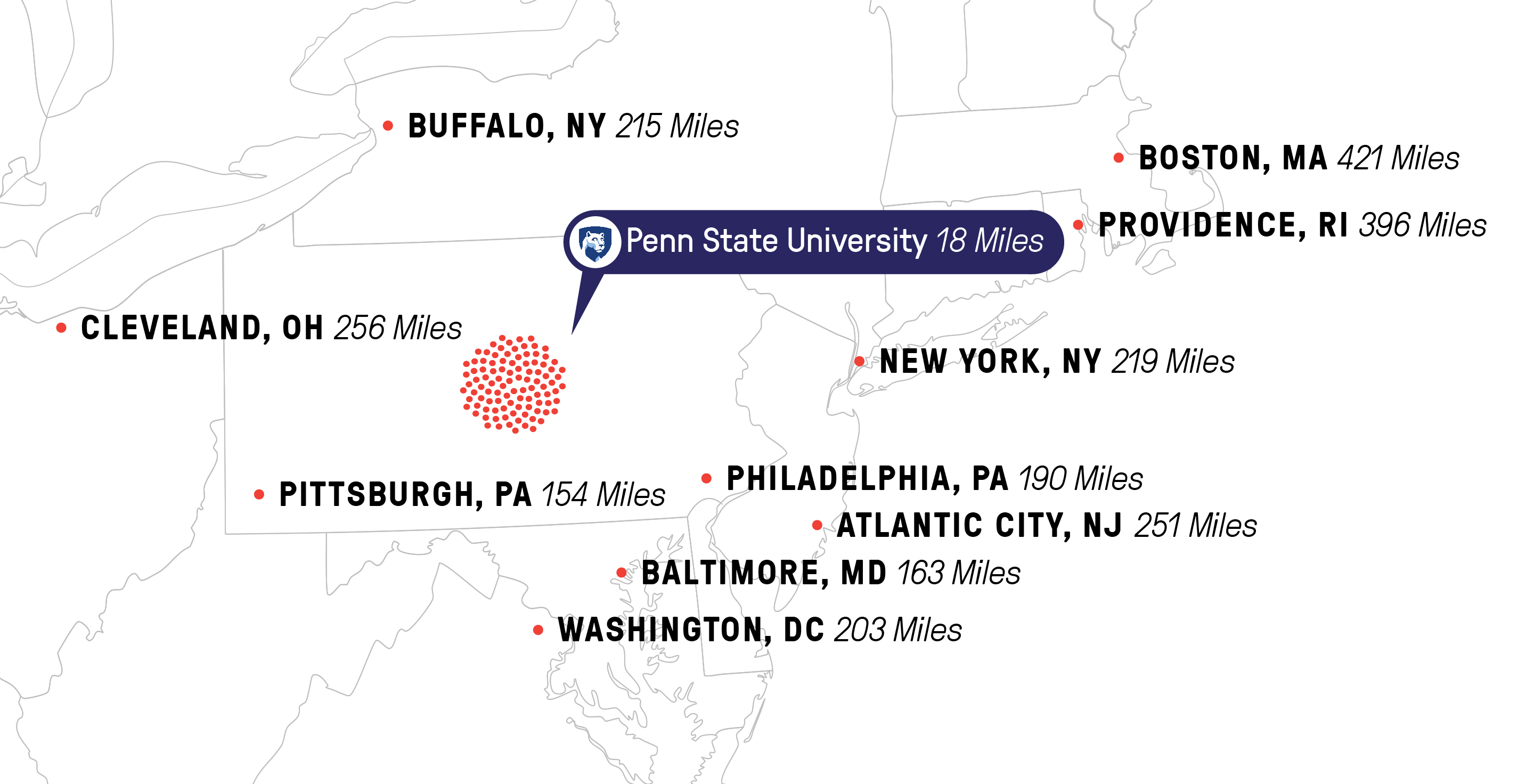 A continuously operating shuttle service to Penn State Main Campus, and other pick-up locations throughout State College, with select times to/from University Park Airport is available. Purchase tickets at karoondinha.eventbrite.com